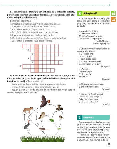 – enumeră două plante i două animale din paji te; Și prin ierburi iute sare.”