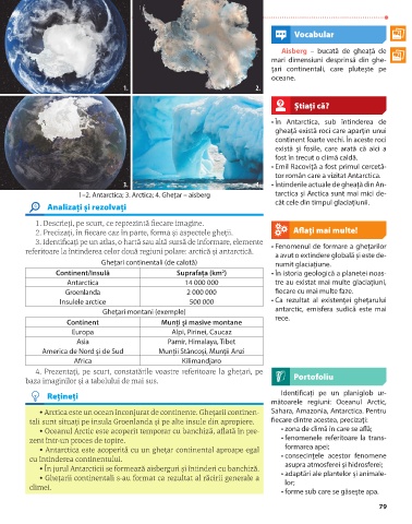 1–2. Antarctica; 3. Arctica; 4. Ghețar – aisberg tarctica și Arctica sunt mai mici de-