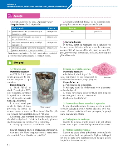 1. Scrieți un referat cu tema „Apa este viaţă!” 2. Completați tabelul de mai jos cu exemple de le-