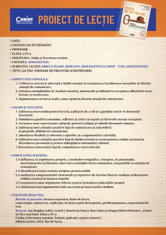 » SUBIECTUL LECŢIEI: MIRCEA ELIADE, ROMANUL ADOLESCENTULUI MIOP - TEMA ADOLESCENȚEI