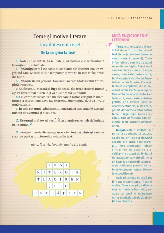 Unitatea 1 Lit er atur ă | UNIT A TEA 1 • ADOLE SCENȚ A