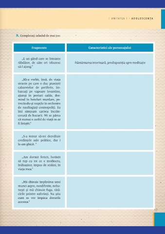 Notă. Tema poate să fie fi- 4. Care dintre îndeletnicirile menționate în text vi se pare mai 8. Completați tabelul de mai jos: