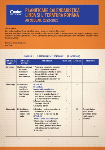Resursă: auxiliarul „Cititul ne face mai buni: Clasa a IX-a: Limba și literatura română: Noțiuni, aplicații, repere