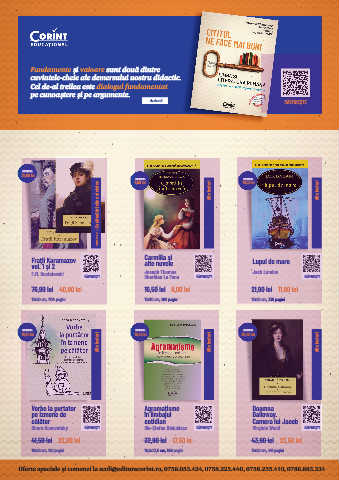 Oferte speciale și comenzi la scoli@edituracorint.ro, 0758.053.424, 0758.225.440, 0758.255.410, 0786.883.334
