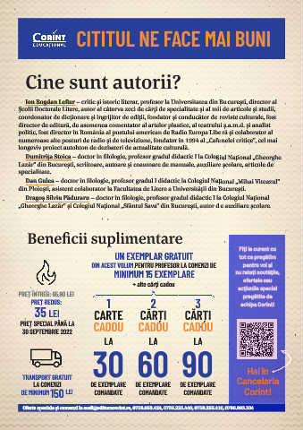 Oferte speciale și comenzi la scoli@edituracorint.ro, 0758.053.424, 0758.225.440, 0758.255.410, 0786.883.334